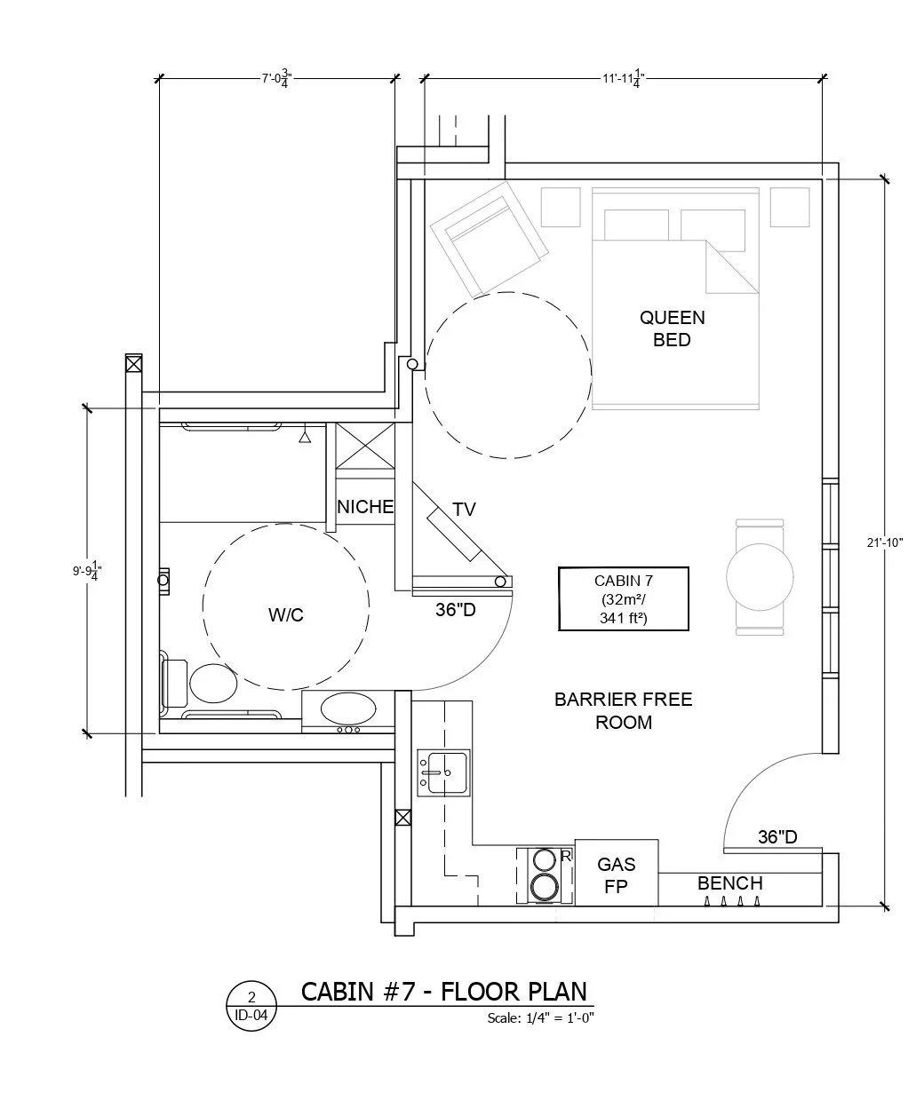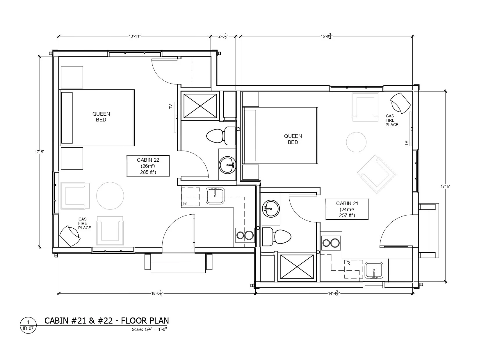 These semi-attached cabins are open concept with sleeping and seating area by the fireplace providing a cozy and private retreat. Each cabin has its own unique charm, offering a warm and welcoming space ideal for a relaxing stay.